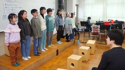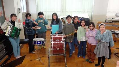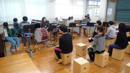 部活動「音楽部」では、お別れ演奏会を開きました。お客さんは、梅津小学校の先生たちです。今日の演奏会を目標に、これまで練習を続けてきました。