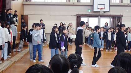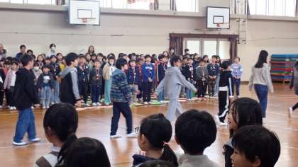 1年生から6年生の全学年がそろうのは、今日の「6年生を送る会」が最後でした。6年生を送りだした後、寂しい気持ちから涙がこぼれた子もいたそうです。