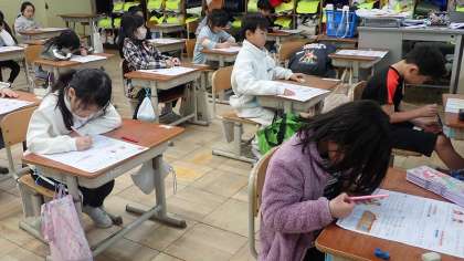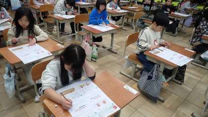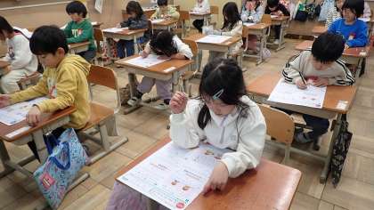 このテストが、1年生最後のテストになるそうです。4月に入学してから、ひらがなや数字の書き方の学習が始まった1年生ですが、今は漢字も書くようになり、たし算やひき算の計算もするようになりました。1年間、よくがんばりましたね!
