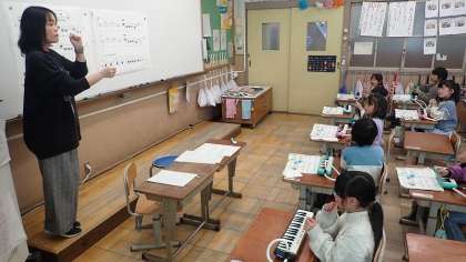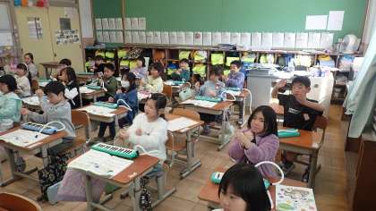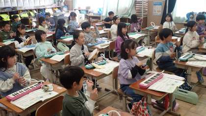 1年生は、音楽の「みんなあわせて楽しもう」の学習をしています。