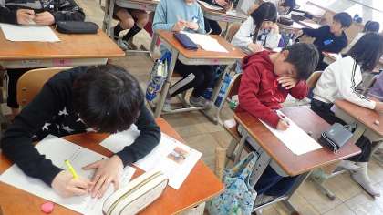 3年生は、「生き方探究パスポート」の1年間のふり返りを書いています。