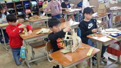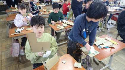 3年生は、図工の「クミクミックス」の作品づくりをしています。