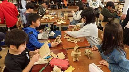 3年生は、図工の「クミクミックス」の作品づくりをしています。