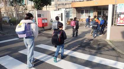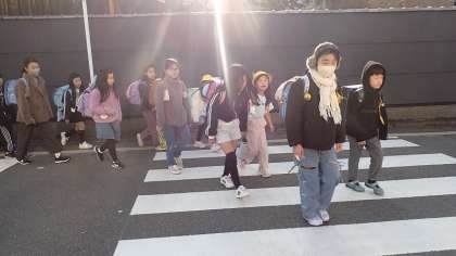 昨日、町別集会を行い、新年度の新しい登校リーダー、副リーダーが決まりました。今日からは、新リーダーが先頭に立って集団登校をするようになりました。学校にやってくる列の並びが変わって新鮮な雰囲気です。列の一番後ろからは、前リーダーや副リーダーが登校の様子を見守ってくれています。
