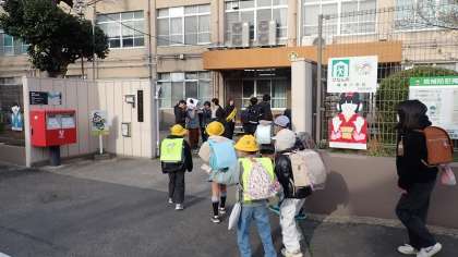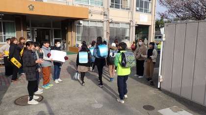 また、今日はPTAによるあいさつ運動も同時に行われました。地域委員の保護者のみなさま、1年間ありがとうございました。