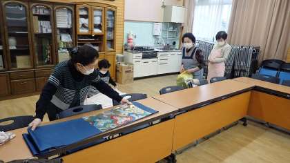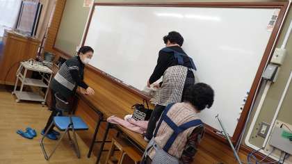 ふれあいサロンは、地域の方だけでなく子どもたちも学習活動で使用することの多い教室です。先日も、茶道体験やお箏の体験学習で使用しました。汚れが気になるところを拭き掃除してくださり、ホワイトボードも隅々まで拭き上げてくださいました。