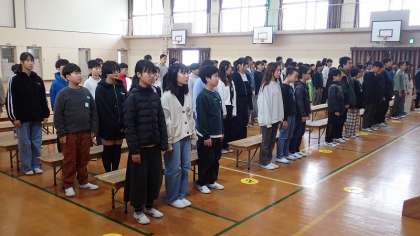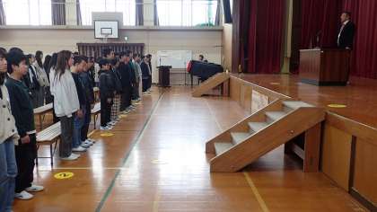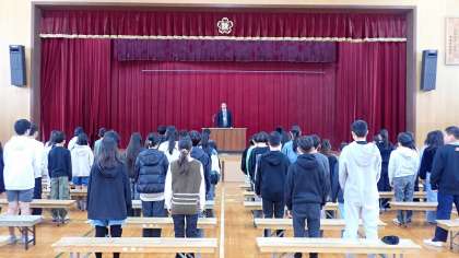 6年間の小学校生活の締めくくりとなる「門出の言葉」です。今日は、月曜日ということもあってか、声に力を感じにくかったところもありましたが、どんな気持ちをだれに伝えたいのかを考えて、すばらしい「門出の言葉」を聞かせてほしいと思います。