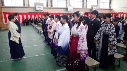 いよいよ、思い出深い体育館を後にします。保護者の皆様、ご来賓の方々、教職員の大きくあたたかい拍手に見送られ、会場を後にしました。