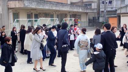 門出のあとも、みんなで記念写真を撮ったり話をしたりして、名残を惜しんでいました。