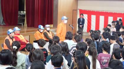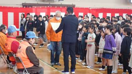 修了式に続き、学校安全ボランティアとして登下校の見守りをしてくださった方々へ感謝を伝える、「見守り感謝の会」を行いました。