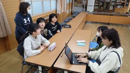 3月28日には教職員離任式があります。そこで、「お別れの言葉」を言う代表の5年生の子どもたちが学校に来て、どんな言葉を贈るかを話し合いました。離任される教職員の方々にお世話になった場面を思い出して原稿にしていきます。