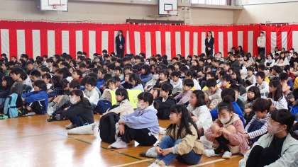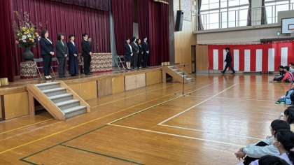 代表の先生からは、梅津小学校の子どもたちのよいところを3つお話しいただきました。「笑顔がすてきなところ」「元気がよいところ」「素直なところ」の3つをこれからも大切にして、素敵な梅津小学校をつくっていってほしいとお話しくださいました。