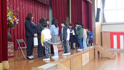 最後に、PTAがご用意くださった記念品を子どもたちからお渡ししました。これまでお世話になった感謝の気持ちを込めてお渡ししました。