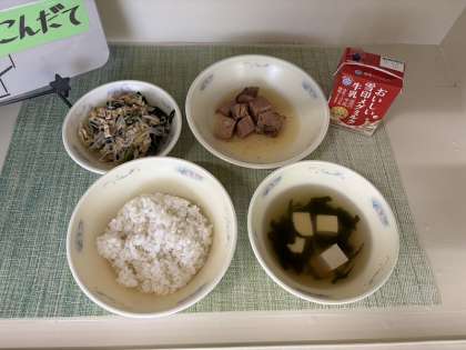 (※今日の献立は、物資調達の都合により「もやしの煮びたし」に変更されています。)