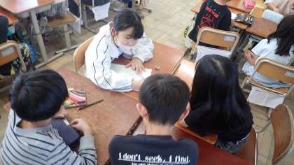 3年生は、学級目標について話し合っています。学年目標をもとにして、どんな学級目標にするとよいか、どんな言葉を大切にしたいかについて、意見を出し合いました。