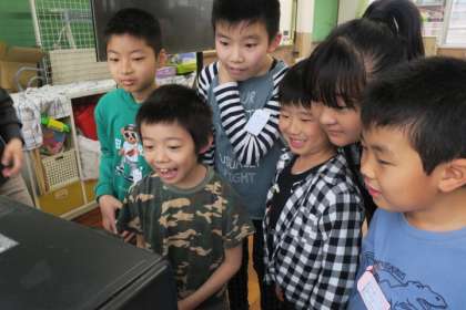 こいのぼりのプラ板を完成させました。トースターで温めると、どんどん縮まっていき、思わず「おぉ。すごい。」と良い顔を見せてくれた子どもたちでした。ぜひ、お家でも見てみてくださいね。