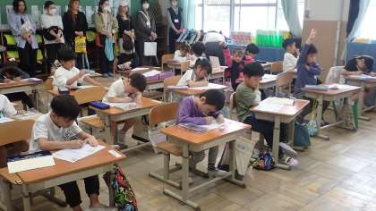今日は、1年生にとって初めての授業参観でした。保護者の方がたくさん来られるので、朝からそわそわしていた子も多かったようです。