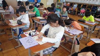 4年生は、音楽の「音楽で心の輪を広げよう」の学習をしています。