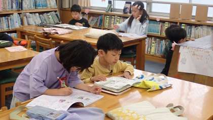 2年生の子どもたちは、1年生のころから本が大好きな子どもたちがたくさんいます。お気に入りをじっくり読んだり、友達と一緒になかよく1冊の本を楽しんだりしていました。