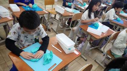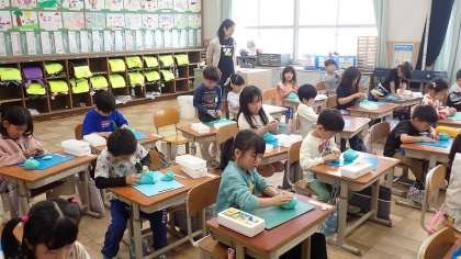 1年生は、図工の「ねんどでごちそう なにつくろう」の学習をしています。