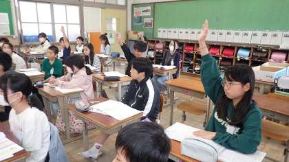 「先着100名様」のお話から、法やきまりの意義を理解し、みんなで安心・安全な社会をつくるために、きまりを進んで守ろうとすることの大切さについて考えました。登場人物の心情を考える場面では、6年生らしく深く読み取って考えたことを発表していました。