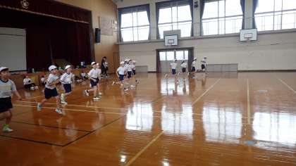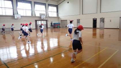 今日は、新体力テストの種目である「20mシャトルラン」に取り組みました。だんだんとペースが上がっていく音楽に合わせて時間内に20mを何本走ることができるかに挑戦します。自分の目標の回数を達成することができたでしょうか。