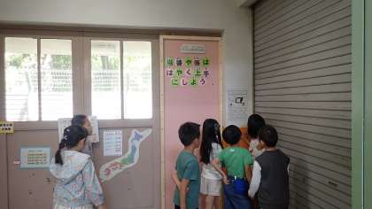 学校たんけんの中で、シールが用意されているポイントがありました。そのシールを全部集めると、「えんそくもたのしみだね」というメッセージが完成しました。来週、1年生と2年生は、一緒に嵐山東公園へ遠足に行きます。その時も、学校たんけんを一緒に回った1・2年生で歩きます。楽しい遠足になるとよいですね!