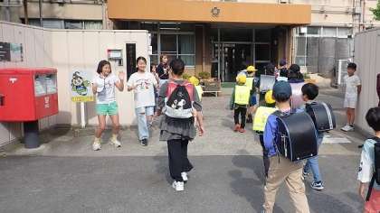 「いいことばの日」は、梅津中学校ブロック3校合同の取組です。今日も、梅津中学校の先輩が来てくださり、計画委員の子どもたちと一緒にあいさつをしてくださいました。今日1日、いいことばをたくさん使うことができたかな?