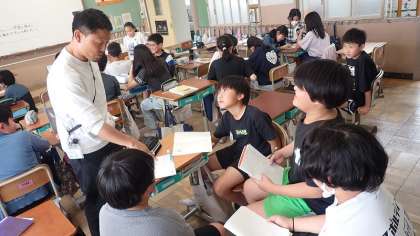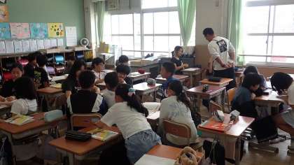 自分たちが考えた「学校のよいところ」と関連してインタビューをしたい教職員を決め、聞きたい内容を話し合っています。来週、それぞれが教職員にインタビューをする予定です。