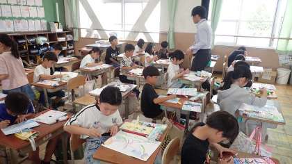 3年生は、図工の「かいて見つける わたしのすきなもの」の学習をしています。