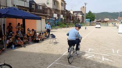 4年生は、午前中に自転車安全教室を行いました。