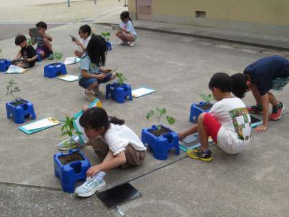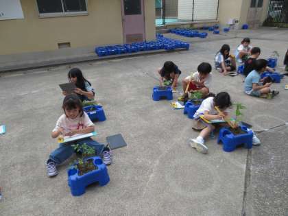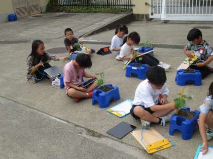 生活の時間に、育てている野菜の観察をしました。