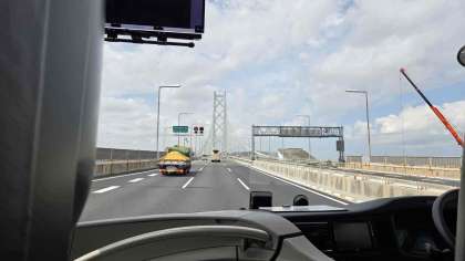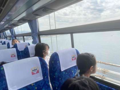 明石海峡大橋を渡っています。バスの中では「すごい!」と歓声が上がっていました。