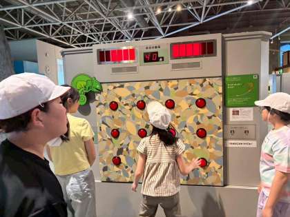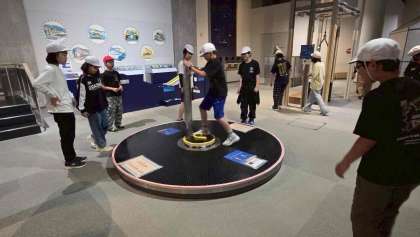 子ども科学館では、科学に親しみが持てるよう可動装置や実験装置、実演などを多く取り入れ、直接触れ、操作しながら「考えてみる」ことができる展示物がたくさんあります。みんな、科学の不思議に触れとても楽しんでいました。