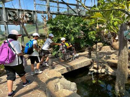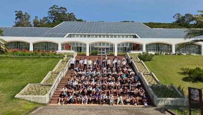 イングランドの丘に到着しました。大階段で全体写真を撮ってからグループ活動を始めました。