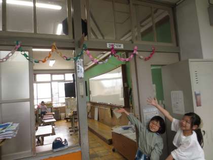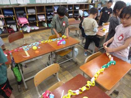 長〜い輪飾りができたので、教室や廊下に飾っています!