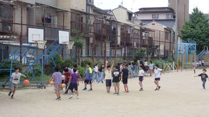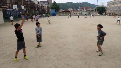 運動場では、子どもたちが元気いっぱい遊んでいます。