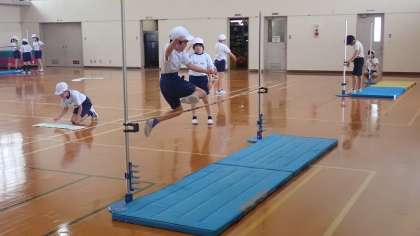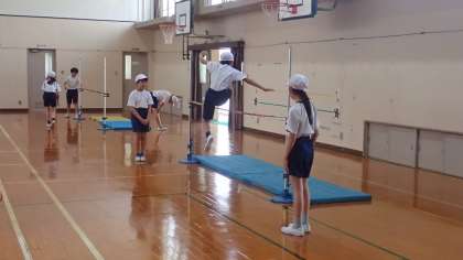 6年生は、体育の「走り高とび」の学習をしています。