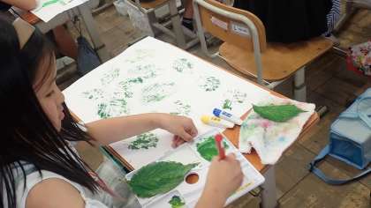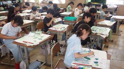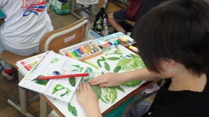 3年生は、図工の「お気に入りの葉」の作品づくりをしています。
