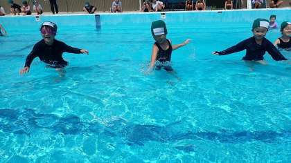 これからは、プールに顔をつけたり水の中にもぐったりして少しずつ水に慣れていきます。今日はどんな学習をしたか、みずあそびを楽しむことができたか、ぜひご家庭でも聞いてください。