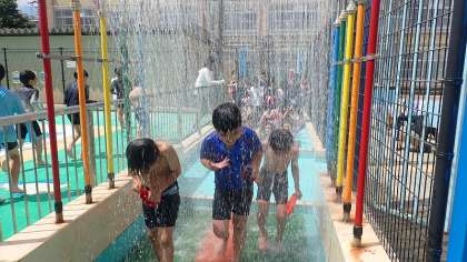 昨日の1年生に続き、2年生も今日から「水あそび」が始まりました。今日もとても良い天気で絶好のプール日和です。