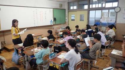 長い年月を経て、昔から今日まで語り継がれてきた「古典」の中から、「竹取物語」「平家物語」「方丈記」「徒然草」のはじめの部分を聞いたり読んだりしました。昔のかなづかいは少し読みにくさを感じているようですが、声に出して読むことで、そのおもしろさも感じていたようです。