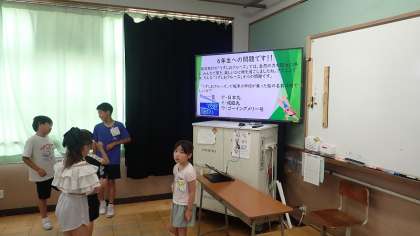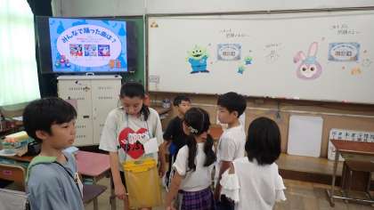 なかよしグループのみんなで一緒に教室をまわり、担任の先生が出題する3択クイズに挑戦します。クイズの内容は、その先生の学年の子どもたちなら答えられるという問題で、どの学年の子どもにも活躍のチャンスがあります。