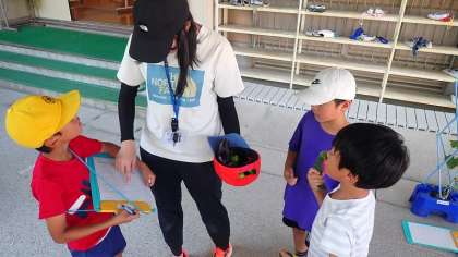 生活科で育てている野菜の様子を観察しながら、気づいたことをメモしています。