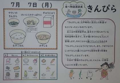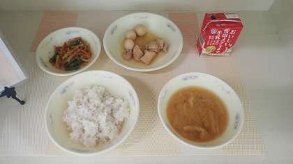 「鶏肉のさっぱり煮」は、砂糖、みりん、料理酒、濃口しょうゆ、米酢などで鶏肉を甘酸っぱく味付けしています。名前の通り、食べると口の中がさっぱりし、鶏肉のおいしさを味わっていただくことができました。「野菜のきんぴら」には、にんじん、三度豆、こんにゃくが使われています。歯ごたえを楽しみながら、ごまの風味も楽しんでおいしくいただくことができました。
