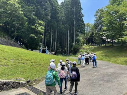 入所式を終えて、3日間過ごす花背山の家の周辺を散策しています。