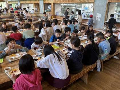 朝のつどいを終えた子どもたちは、食堂で朝食をいただいています。