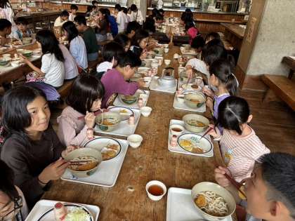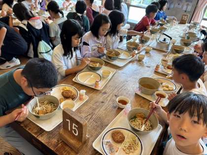 昼食は、メインの献立が決まっていて、今日はきつねうどんでした。しっかり食べて、午後の活動プログラムに向けてエネルギーを満タンにしてくださいね。