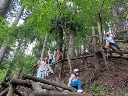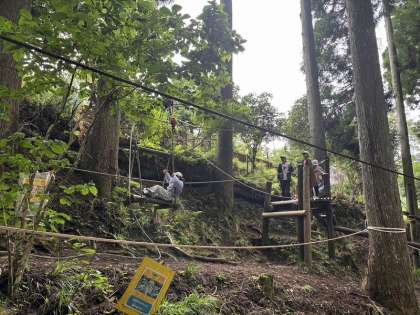「野猿」というロープウェーのようなコースや、滑車すべりなども用意されており、みんな楽しく活動することができました。