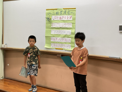 7月11日、梅津北小学校の児童のみなさんと交流会を行いました。今回は、むくのき学級の児童が司会・進行や「はじめの言葉」を担当し、交流会のスタートを元気に盛り上げました。